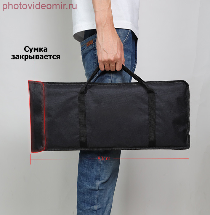 Быстроскладной прямоугольный софтбокс K3 60x90см с конструкцией каркаса в виде зонта. Мобильный софтбокс весом 920 грамм разбирается и складывается за минуту и подходит для использования в пленэрных фото- и видеосъемках. Рассчитан на длительную эксплуатацию, благодаря упругим легким спицам из алюминиевого сплава и литому алюминиевому хвостовику со сменным металлическим адаптером для байонета типа Bowens. Вращающееся металлическое кольцо адаптера дает возможность повернуть софтбокс не снимая его с источника света. Софтбокс используется с флуоресцентными и светодиодными источниками постоянного света и студийными вспышками. Купол-рефлектор софтбокса изготавливается из специальной синтетической ткани с серебристой светоотражающей поверхностью с высоким коэффициентом отражения. В комплект софтбокса входят тканевые рассеиватели «на липучках» — внутренний и внешний диффузоры. Диффузоры сделаны из полистирола стабилизированного типа с UV-покрытием. При минимуме поглощения проходящего света, они позволяют получить на выходе хорошее, ровное световое пятно. Внутренний диффузор крепится к резинкам на спицах при помощи карабинов, а внешний — по периметру купола софтбокса на широкую 5 см ленту «вглубь» софтбокса. При установке внешнего диффузора с заглублением, остается возможность установить соты. Софтбокс используется со вспышками и осветителями для создания мягкого направленного рассеянного светового потока. Благодаря прямоугольной форме, софтбокс имитирует естественное освещение «от окна». Комплектуется чехлом для хранения и переноски.