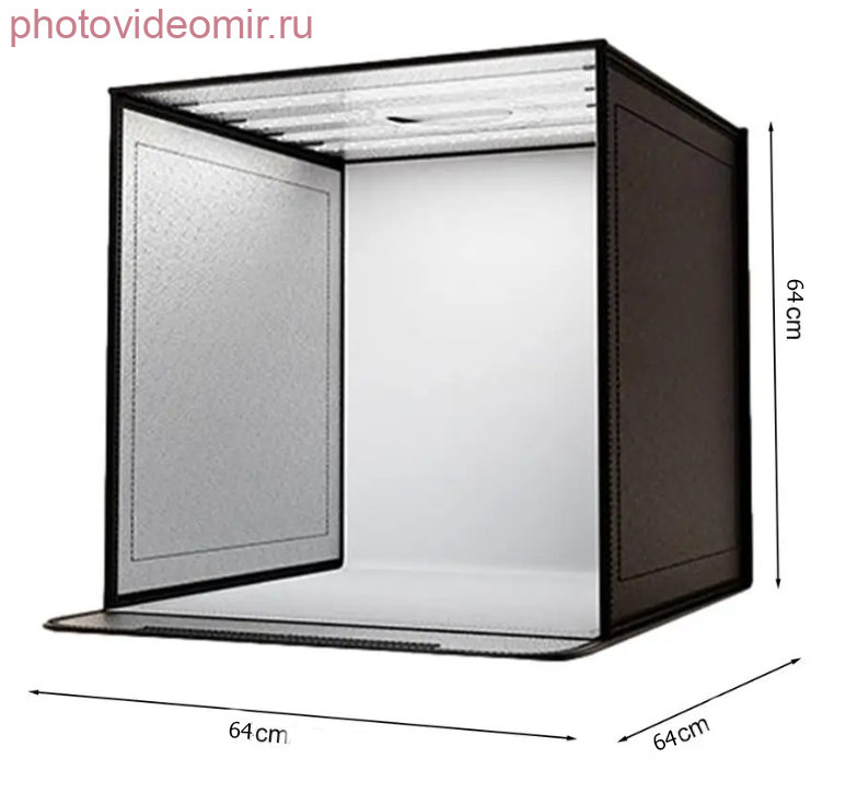 Фотобокс с LED подсветкой это готовая мини-студия для фотографирования небольших объектов, внутренний размер фотобокса 65×65×65 см. Используется в предметной съёмке: для печатных каталогов, интернет-магазинов и т. д. Компактность фотобокса в сложенном состоянии позволяет хранить его в любом шкафу. Также фотобокс отличается простотой сборки и разборки, использование инструмента для этого — исключено.