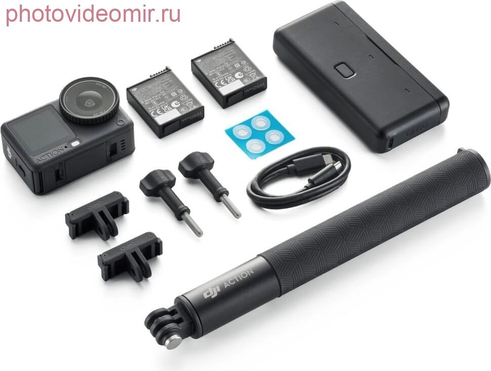 Комплектация: Osmo Action 6 — 1 шт. Батарея Osmo Action Extreme Battery Plus (1950 мАч) — 3 шт. Изогнутая основа Osmo Action — 1 шт. Крепление-адаптер Osmo Dual-Direction Quick-Release — 2 шт. Винт Osmo — 2 шт. Кабель USB-C — USB-C PD (USB 3.1) — 1 шт. Многофункциональный чехол для аккумулятора Osmo 3 — 1 шт. Противоскользящая накладка Osmo Action — 1 шт. Характеристики Экшн-камера DJI Osmo Action 6 Adventure Combo