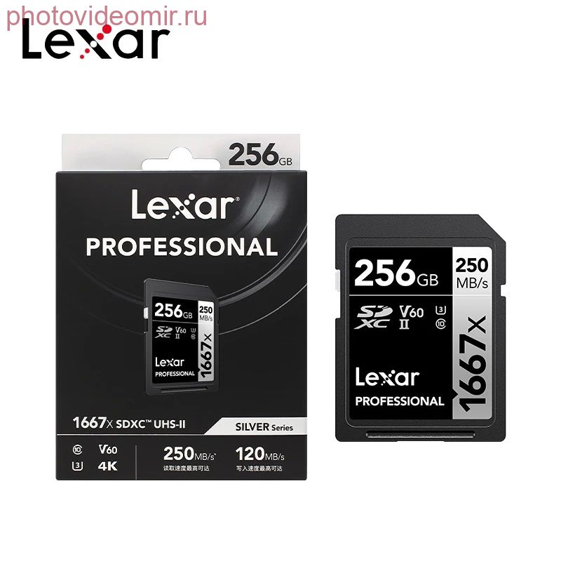 Описание Карта памяти 256Gb Lexar Professional SILVER SDXC UHS-II (250/120MB/s) V60 U3 (LSD256CB1667)