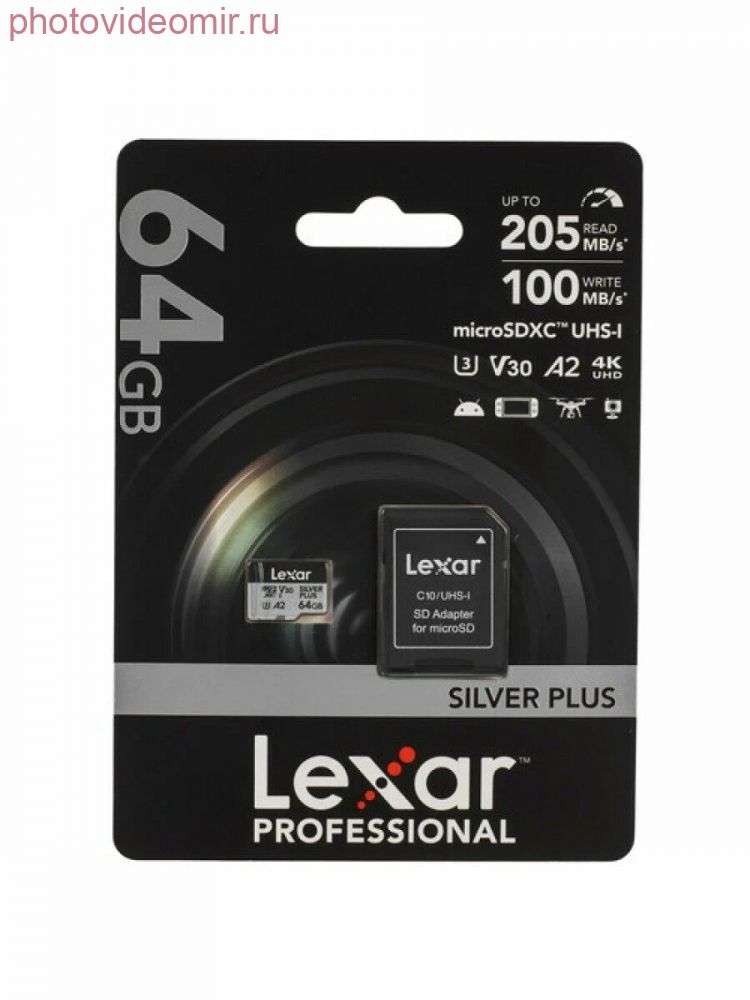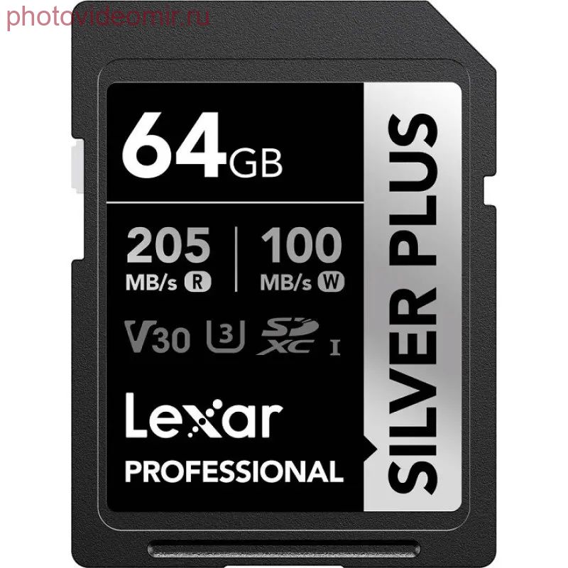 Описание Карта памяти 64GB Lexar Professional SILVER PLUS SDXC UHS-I (205/100MB/s) C10 V30 U3 (LSDSIPL064G-BNNNG)