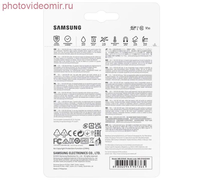 Карта памяти Samsung EVO Plus имеет защищенное исполнение. Она устойчива к воде, перепадам температуры, рентгеновскому и магнитному излучению, падениям. Он позволяет устанавливать карту Samsung EVO Plus в камеры, компьютеры и другую технику. Характеристики: Тип карты памяти - SDXC Совместимость - SDXC Объем карты памяти - 64 Гб Класс скорости - Class 10 UHS-I U3 V30 Скорость чтения до - 200 Мб/с Скорость записи до – 130 Мб/с Характеристики Карта памяти Samsung PRO Plus SDXC 64 ГБ [MB-SY64S/WW]