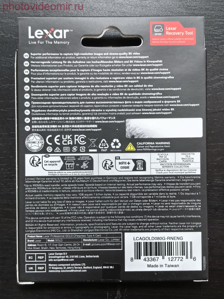 Описание Карта памяти Lexar CFexpress Type A 80GB Professional GOLD Series (R900/W800)