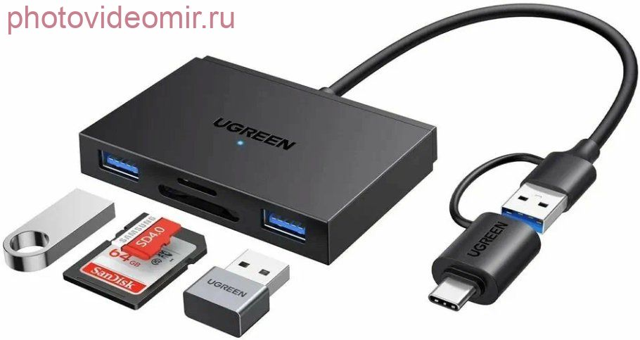 Кардридер UGREEN CM812 (45167) 4-в-1. Цвет: черный.