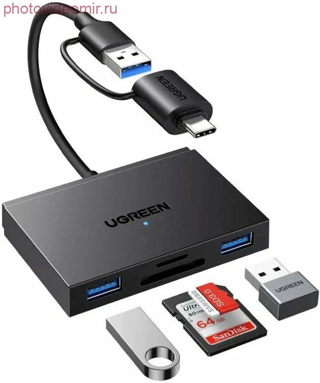 Описание Картридер UGREEN CM812 4 в 1, черный