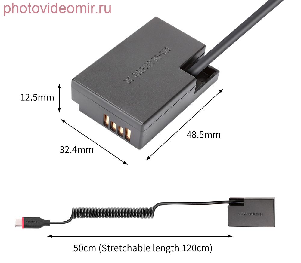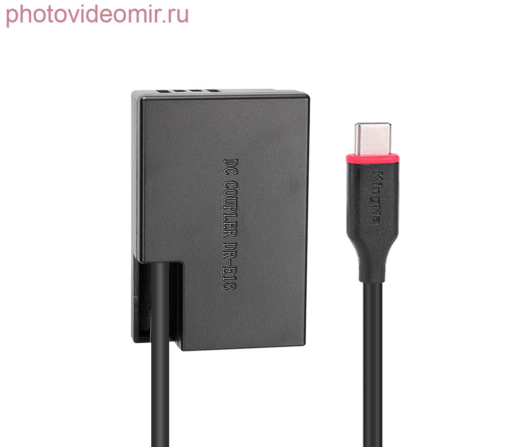 Адаптер питания Kingma TC-LPE17 – аналог оригинального каплера Canon DR-E18. Адаптер питания («каплер») Kingma TC-LPE17 устанавливается в батарейный отсек камеры вместо аккумулятора Canon lp-e17. Далее он подключается к универсальному USB аккумулятору или сетевому зарядному устройству: штекер USB Type C (необходимо, чтобы источник питания поддерживал функцию USB QC или PD, 9В 2А). Использование каплера значительно продлевает время съемки, а также снижает нагрев камеры при длительном использовании. Благодаря встроенному чипу при подаче питания камера распознает каплер как полностью заряженный аккумулятор.