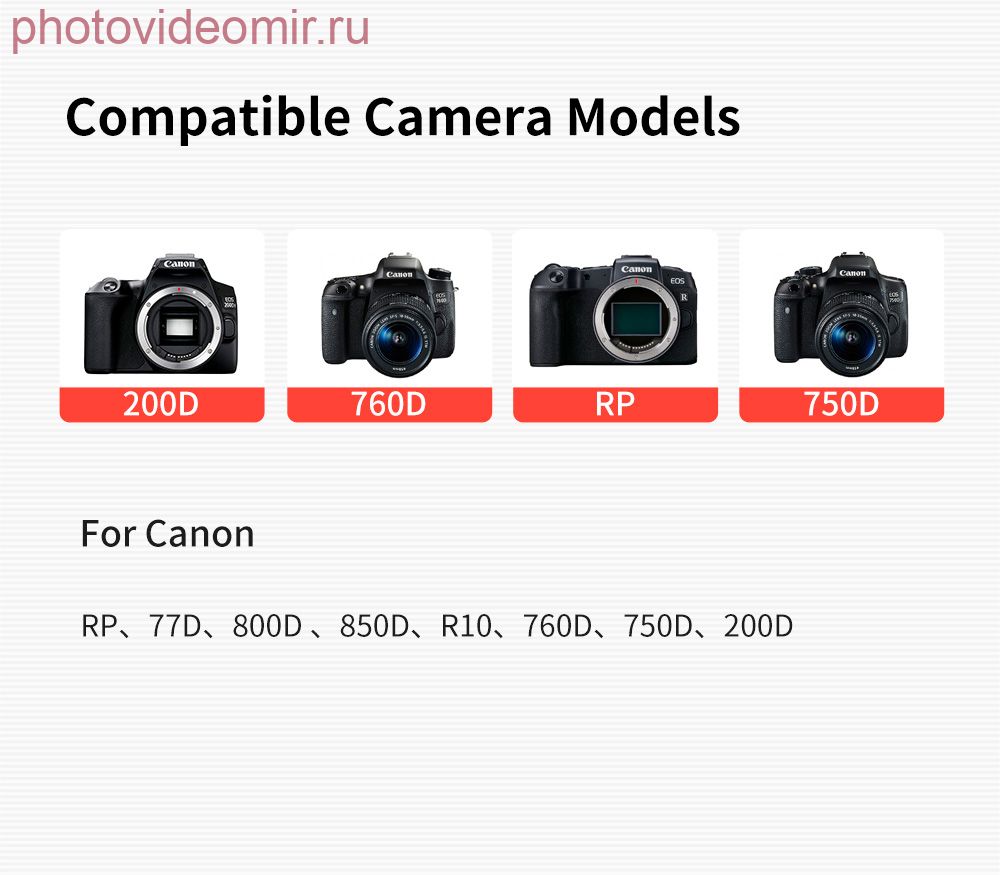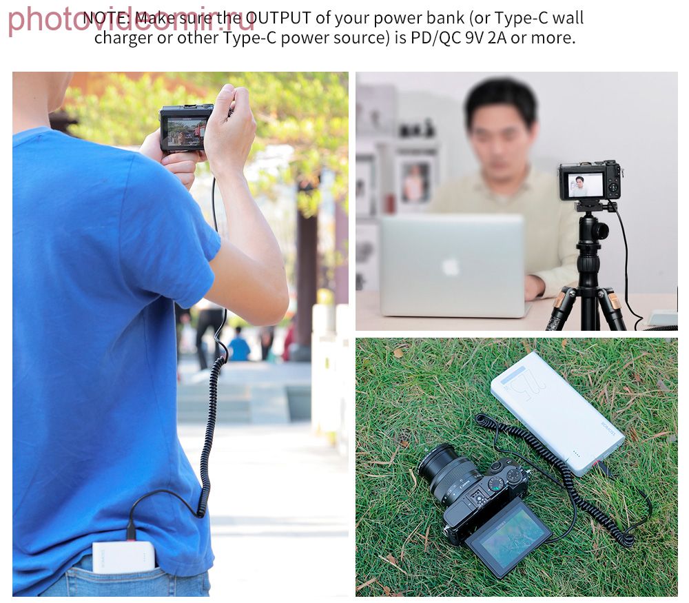 Замените настоящую батарею внешним источником питания, таким как power bank, чтобы обеспечить долгосрочное питание камеры, чтобы фотоаппарат мог работать в течение длительного времени. Подходит для Canon Rp, R8, 77D, 800D, 850D, R10, 760D, 750D, 250D и другие камеры. Обратите внимание: эта версия не работает с EOS M3, M5, M6, M6 Mark II. Для источника питания необходим USB-блок питания 9 В 2A, мобильный USB-питание или зарядная вилка (не входит в комплект), что значительно продлит время съемки вашей камеры. Пружинный трос, больше никаких прерываний во время работы. Легкость упаковки и удобный дизайн. Прямая длина 50 см, удлиненная длина 120 см. Функция: заменяет аккумулятор типа NP-FW50 и обеспечивает подключение к источнику питания для длительной и непрерывной работы вашей камеры. Это лучший выбор для длительной фотосъемки в студии и в помещении. Спецификация: Материал: пластик Черный цвет вход: для постоянного тока 9 В 2А для выхода постоянного тока: 8,4 В 2A Длина кабеля питания: 50 см Сопутствующие товарыГарантия возврата![]() Если наш товар Вам не подойдет или не понадобится, мы вернем Вам деньги