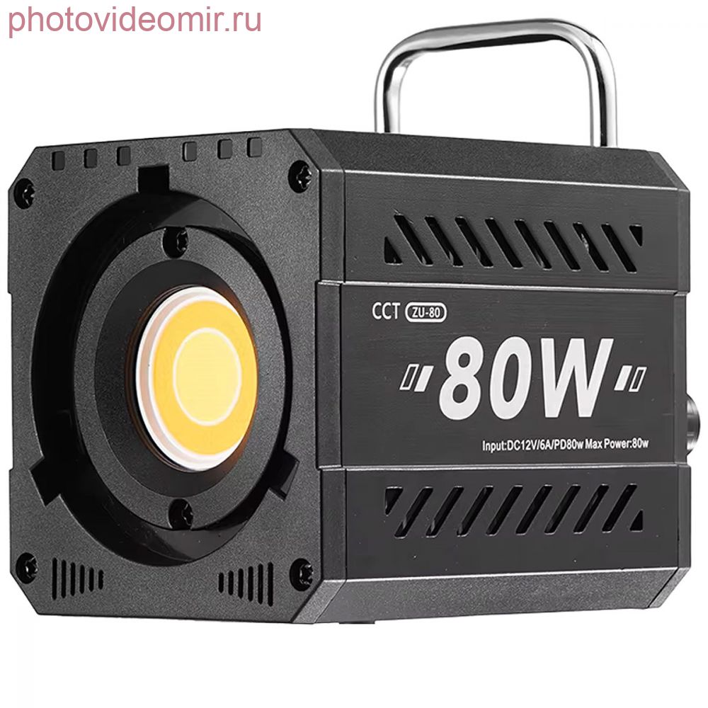Осветитель светодиодный ZU80 - компактный осветитель, 2700-7500K(±200), мощность 80 Вт, освещенность 13500лк с рефлектором. Возможность управления с пульта ДУ (в комплекте), рефлектор, активное охлаждение. Вес осветителя 400 г.