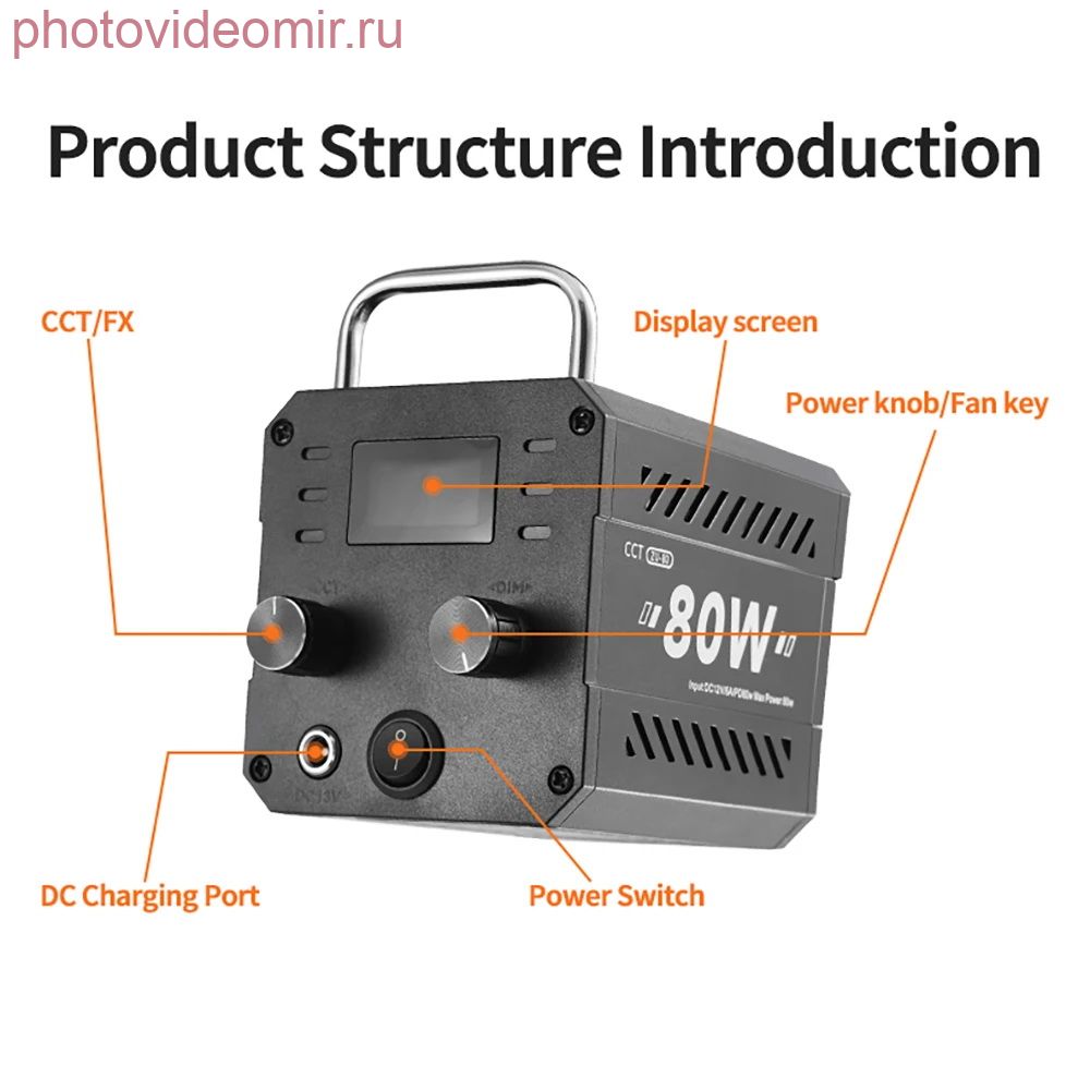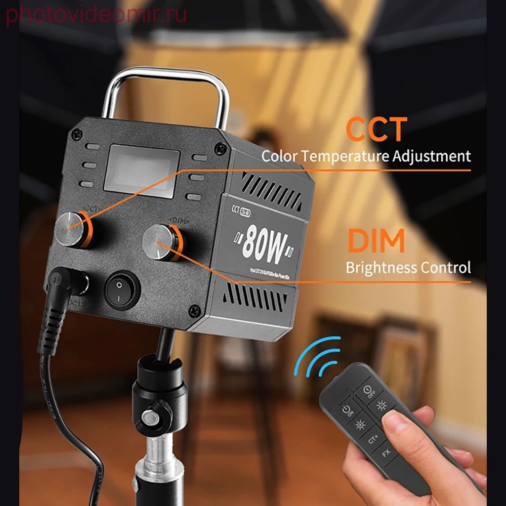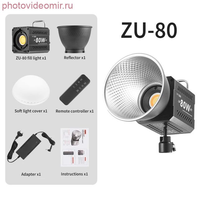 Комплектация: Осветитель, рефлектор, рассеиватель, пульт дистанционного управления, блок питания. Характеристики Осветитель светодиодный ZU80 80W
