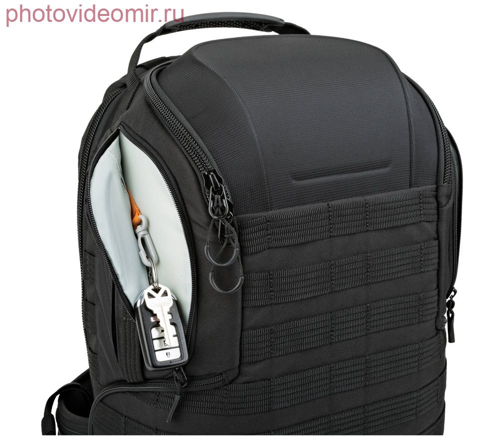 Чуть больше стали боковые люки, теперь в них легче проходят крупные камеры с батарейными ручками. По бокам добавлена полоса с вертикальной ленточной прошивкой. Увеличена пряжка поясного ремня: теперь используется 38-миллиметровая. Внутренние карманы теперь выполнены из полупрозрачной ткани, чтобы вам проще было понять, что где находится. Добавлена широкая петля на спинке, чтобы рюкзак можно было зафиксировать на ручке дорожного чемодана. ProTactic BP 350 AW II вмещает 1-2 камеры и несколько объективов. В зависимости от ваших потребностей, вы можете отгородить часть пространства под личные вещи. Рюкзак предоставляет доступ с 4 сторон: справа, слева, сверху и через спинку. Боковые доступы для безопасности можно закрыть на небольшие навесные замки (универсальные, приобретаются отдельно). Помимо внутренних отсеков в комплекте идут 2 навесных кармана для аксессуаров, два ремня и тканевая чашка для ног штатива. Серия рюкзаков ProTactic интересна тем, что вы можете использовать их в максимально обтекаемом виде (удобно, если вам предстоит перемещаться в тесных, многолюдных пространствах), либо, наоборот, обвесить их по максимуму различными чехлами и подсумками (если вы собрались на пару дней на природу). Как уже говорилось, это очень крепкие рюкзаки, которые способны вынести серьезные испытания. При этом они комфортны и удобны для использования в мирной жизни. Рюкзаки ProTactic BP II выпускаются в 2 размерах: 350 лучше подходит для камер среднего размера и небольших ноутбуков (до 13"), 450 – для больших зеркальных камер с батарейной ручкой и стандартных 15" ноутбуков. Особенности: