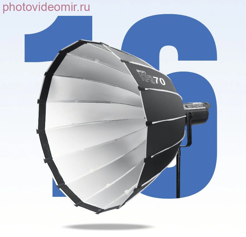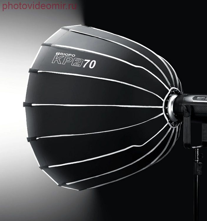 Triopo KP2-70 – быстроскладной параболический 16-секционный софтбокс с диаметром описывающей окружности 70 см и глубиной 50 см. Софтбокс может использоваться совместно с импульсными вспышками и светодиодными осветителями с байонетом Bowens, чтобы формировать мягкий равномерный световой поток с четким ровным краем светового пятна. Такое освещение придает объем и детализацию объекту съемки, а почти круглая форма насадки может добавить оригинальный блик в глазах или на блестящей поверхности. Благодаря быстроскладной конструкции, Triopo KP2-70 подойдёт фотографам и видеографам, часто работающим на выезде или в небольших студиях, где нет возможности хранить громоздкое оборудование.