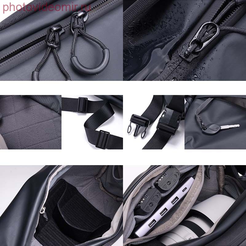 Сумка Ulanzi PB008 вмещает беззеркальную камеру с 2-3 объективами + мелкие аксессуары, либо складной квадрокоптер типа DJI Mavic со всем необходимым. Сумка выполнена из плотного полиэстера 600 ден с полиуретановым покрытием, поэтому легко переносит дождь без необходимости в специальных чехлах-дождевиках. Основное отделение закрывается на верхнюю молнию, пространство внутри можно организовать с помощью разделителя на липучках. Для небольших аксессуаров предусмотрен внутренний карман на молнии и широкий внешний карман спереди (также на молнии).